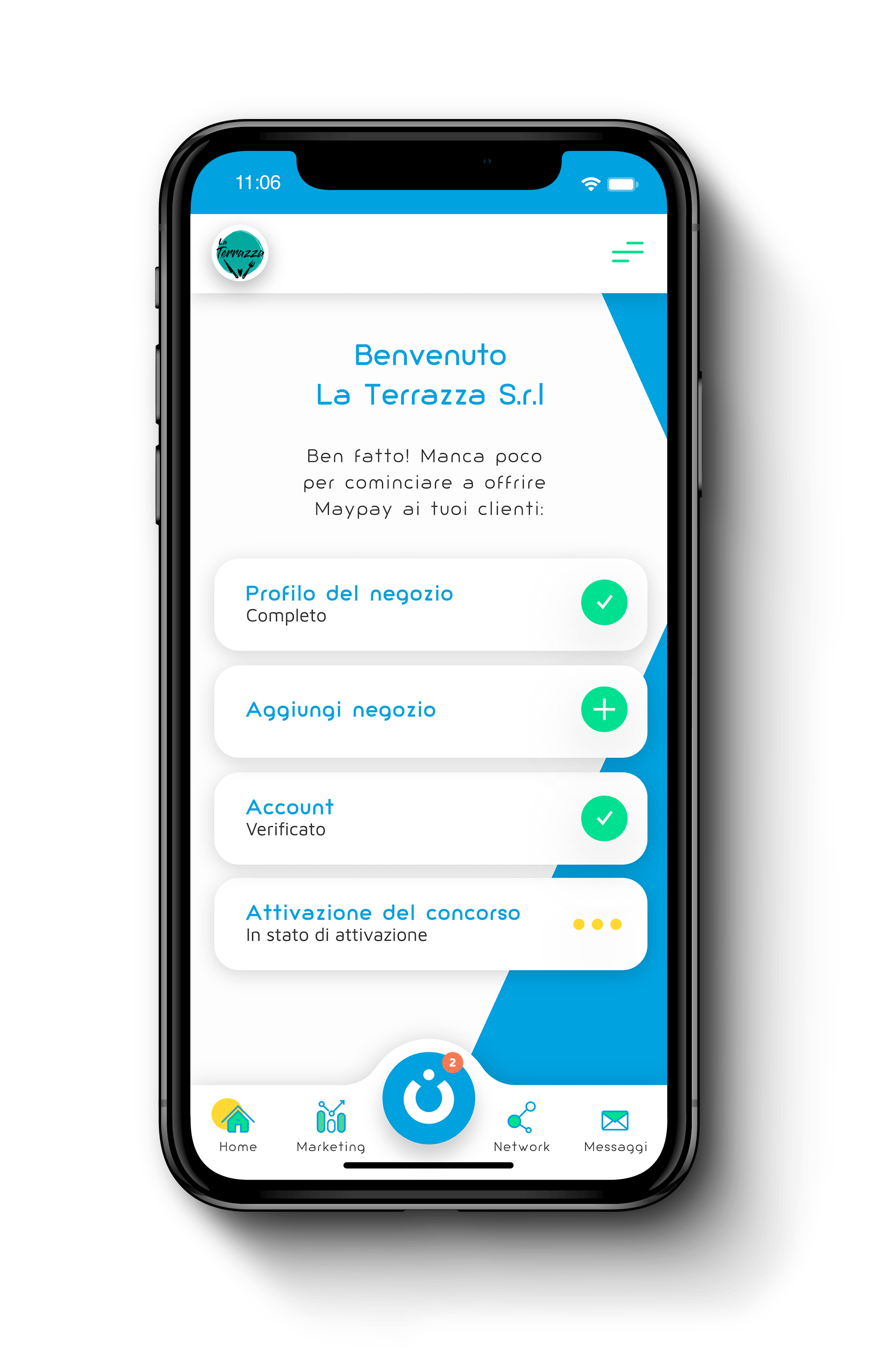 Il messaggio indica che Maypay sta aggiungendo la tua attività tra i co-promotori del Concorso a Premi, nel quale si configura legalmente la possibilità che gli utenti Maypay hanno di vincere qualsiasi acquisto presso tutti gli esercizi convenzionati. Il tempo minimo di attesa, in base alla normativa, è di due settimane.